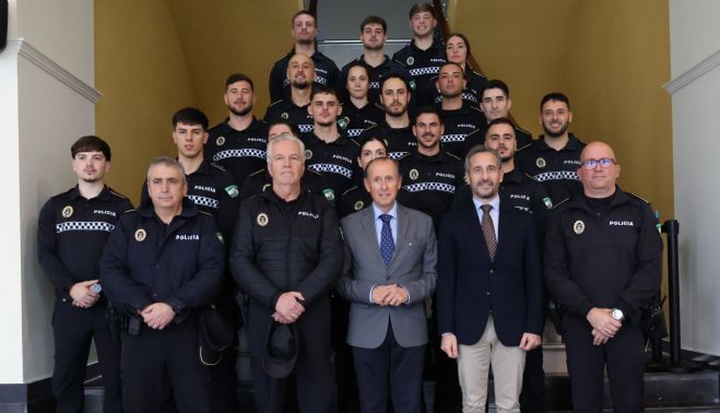 El alcalde ha estado acompañado por el delegado del área, Jose Vera; el intendente jefe de la Policía Local, Juan Carlos Castro, y el intendente, Javier Durán, que han querido arropar a los nuevos agentes antes de su marcha a la Escuela de Seguridad Pública de Andalucía, donde comenzarán el curso de formación que los capacitará para ejercer oficialmente sus funciones.