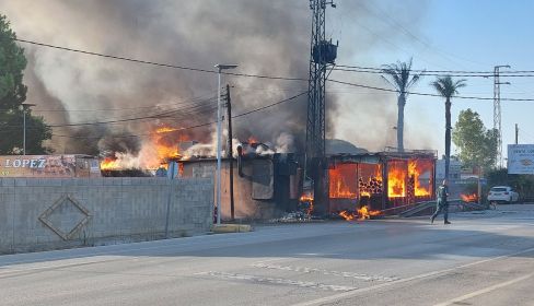 Hasta el lugar se han desplazado efectivos de Bomberos, Policía Local y Guardia Civil, que se encuentran actuando para sofocar el fuego y prevenir riesgos adicionales. El humo y las llamas han provocado la alarma entre vecinos y conductores que transitaban por la zona.