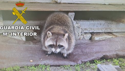 La Guardia Civil de Cádiz ha rescatado un mapache que se encontraba abandonado en una finca de la localidad de Chiclana de la Frontera. Gracias al aviso de un ciudadano anónimo el animal se encuentra en perfecto estado y será trasladado al Zoo de Castellar de la Frontera, que se hará cargo de sus cuidados y mantenimiento.