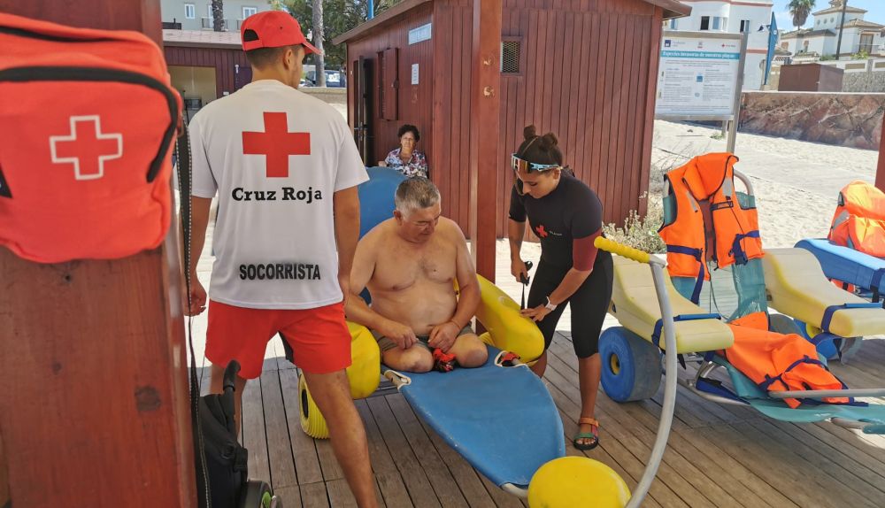 Uno de los servicios fundamentales a los que Cruz Roja da también respuesta cada año es a la solicitud de personas con diversidad funcional para acudir a la playa a darse un baño seguro. En esta temporada, los voluntarios han acompañado a 641 personas que han solicitado el servicio, facilitándoles así el baño en el mar con sillas anfibias y otros materiales y ayudas técnicas y acompañándoles desde su llegada a la playa.