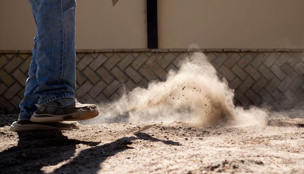 Polvo acumulado en la vía pecuaria de la Colada de Fuente Amarga en Chiclana.