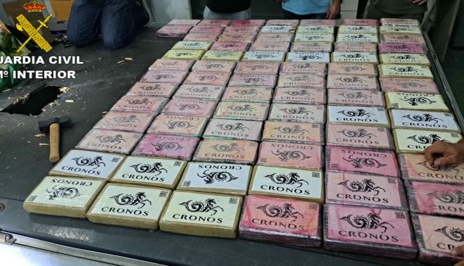 Durante la revisión, los agentes descubrieron un doble fondo perfectamente camuflado en el habitáculo de carga. En su interior se ocultaban 80 paquetes, cada uno de ellos con un kilo de cocaína de gran pureza. La cantidad intervenida asciende a 80 kilogramos, un alijo valorado en varios millones de euros en el mercado ilícito.