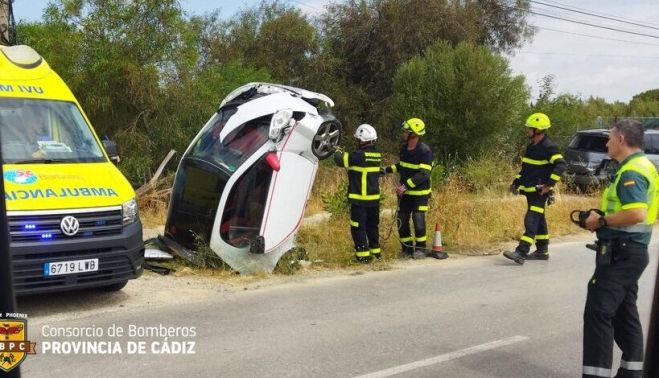 El Consorcio de Bomberos de la Provincia de Cádiz ha informado este lunes de un accidente de tráfico con posible rescate de personas en la carretera del Marquesado, con camino Arroyo de los Gamuzones, en Chiclana. Se produjo cuando un vehículo iba marcha atrás para salir del carril y metió las ruedas en la cuneta.