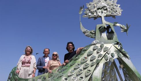 Durante el encuentro, se ha procedido al descubrimiento de una escultura en honor a la artista sevillana, aunque afincada en Chiclana, en la glorieta de la confluencia de la N-340 con la carretera de La Petit (Loma del Puerco), próxima a la urbanización de San Andrés Golf, donde ella residía.