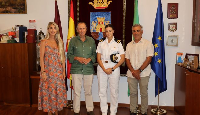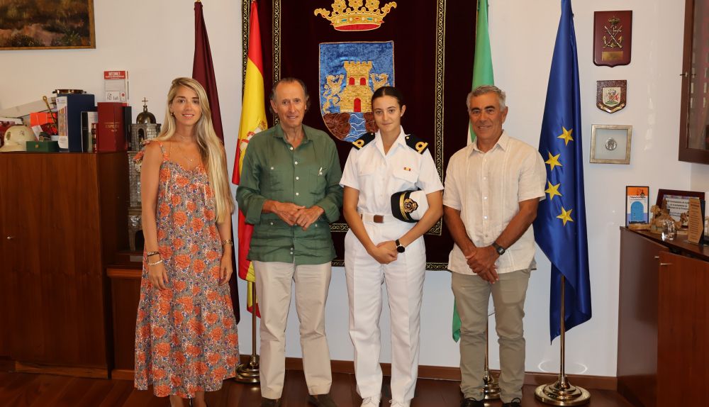 Chiclana ha recnocido el mérito de Sara García-Cubillana, ser la primera mujer en graduarse como número uno en la historia de la Escuela Naval Militar. El alcalde del municipio, José María Román, ha recibido a la joven alférez de navío.