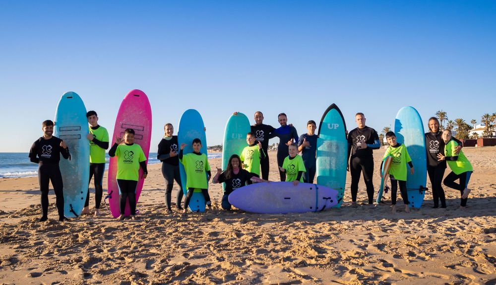 El sol aprieta, pero no calienta. Hace un frío que pela en la playa de La Barrosa de Chiclana, donde un grupo de niños y niñas está a punto de meterse en el mar. No es una locura. El clima no es un obstáculo para disfrutar de una tarde de surf. Ataviados con trajes de neopreno y unas tablas, se disponen a practicar este deporte acuático que lleva siete años dando alegrías a los menores y a sus familias.