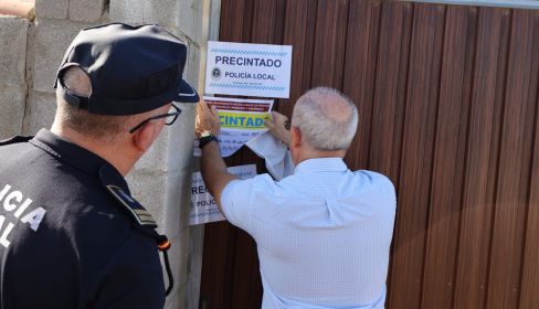 Inspectores de la Delegación de Urbanismo y agentes de la Policía Local se han personado en esta ubicación para llevar a cabo el procedente precinto de 12 de las 14 subparcelas, mientras que las otras dos no han sido precintadas al tratarse de uso residencial.