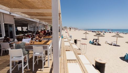 Esta parte de la costa gaditana se extiende a lo largo de 2.800 metros entre la Playa de Santa María y la de Cortadura. Considerada una de las mejores playas urbanas de Europa, ofrece arena dorada, servicios completos y una gran animación durante todo el año. Su paseo marítimo es un hervidero de vida con bares y chiringuitos como Arsenio Manila o Nahú Beach, donde se puede disfrutar desde tapas hasta platos más elaborados con el Atlántico como telón de fondo.