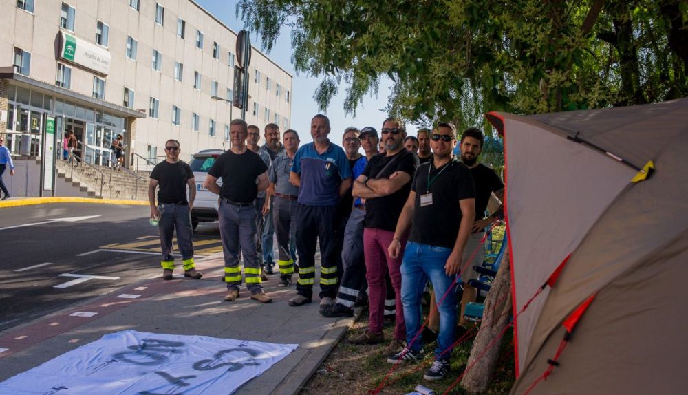 Los trabajadores de mantenimiento del Hospital de Jerez vuelven a protestar por el procedimiento abierto por el SAS para que una empresa privada se haga con el servicio en los hospitales y centros de atención primaria de la provincia. Esta vez lo hacen con un campamento, apostado frente al edificio de Materno Infantil, durante 24 horas que finalizarán este próximo miércoles a las ocho de la mañana.