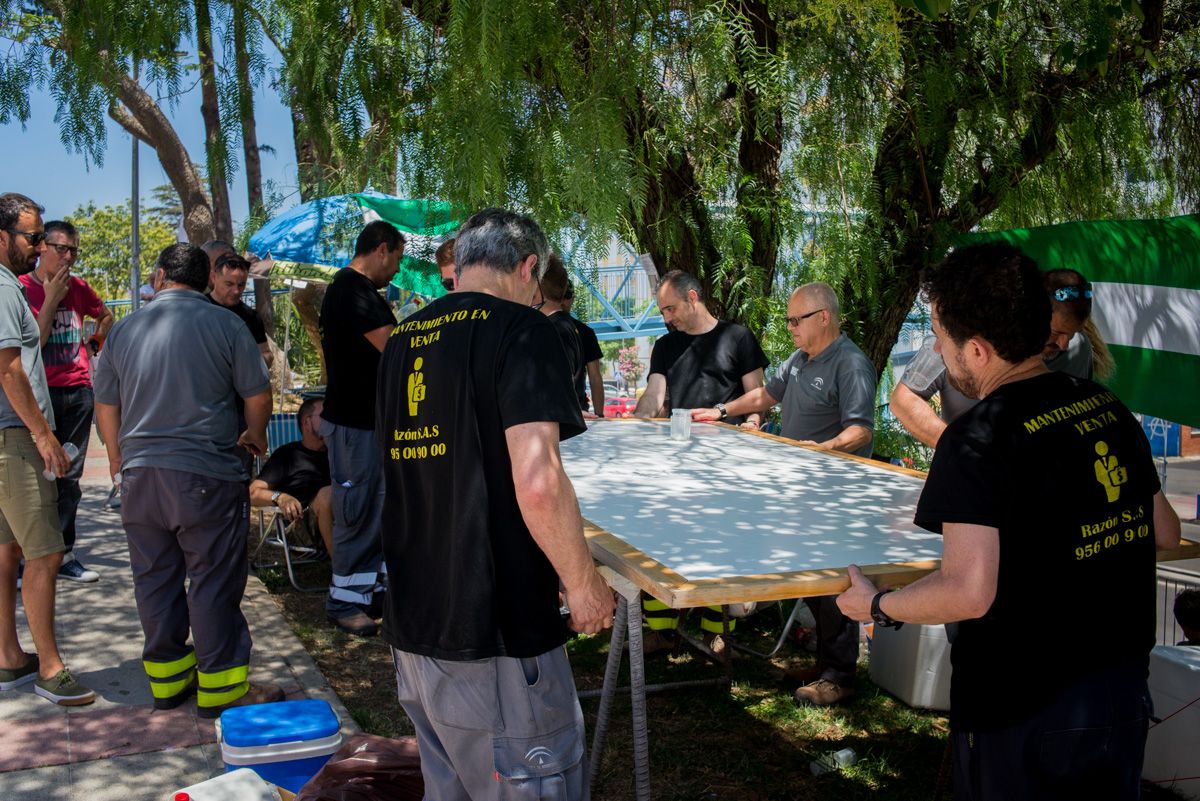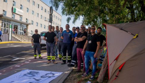 Prácticamente la totalidad de los trabajadores del centro jerezano, unos 55, pasaron por el campamento en diferentes turnos. Ni el calor ni las fuertes rachas de levante fueron un impedimento para reivindicar su postura. Y es que, como recuerda José María Márquez, electricista y portavoz de los trabajadores, de hacerse con el servicio una empresa externa ésta se haría cargo del 65 por ciento de las funciones que actualmente llevan a cabo los trabajadores de mantenimiento en los hospitales gaditanos, mientras que en atención primaria este porcentaje ascendería al cien por cien. De esta manera, y ante esta brusca bajada de su carga de trabajo, entienden que “el futuro de nuestros empleos peligra”. “Nuestra lucha es intentar paralizar este proceso y buscar otras fórmulas que no pasen por externalizar o privatizar”.