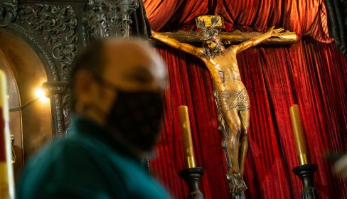 De momento, habrá que esperar para recuperar al crucificado que sale junto a Nuestra Señora del Mayor Dolor y San Juan Evangelista, sin la compañía de María Santísima de Consolación y Lágrimas, que lleva cuatro años en la iglesia. “El paso se partió, hicimos un sacrificio enorme para hacerle uno nuevo y ahora llega esto”. Javier se refiere a la pandemia, la que paraliza todo, la que ahoga.