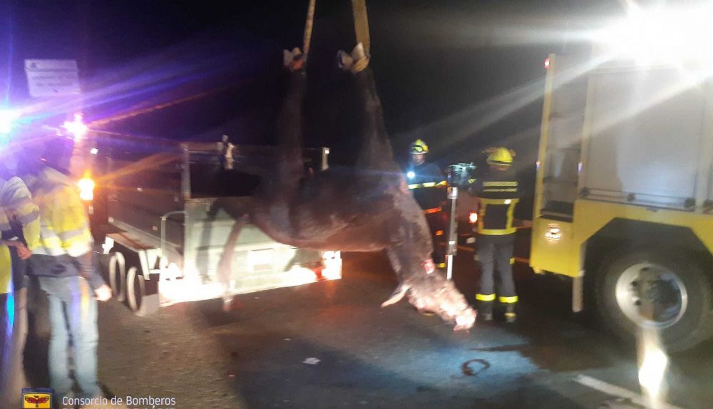 Posteriormente, se llevó a cabo la delicada tarea de retirar a los animales de la vía para restablecer la normalidad en la carretera. En esta labor, la Guardia Civil de Tráfico contó con la colaboración de un vehículo pesado grúa, así como dos autobombas, una urbana ligera y otra rural pesada, para facilitar la operación y garantizar la seguridad en la zona.
