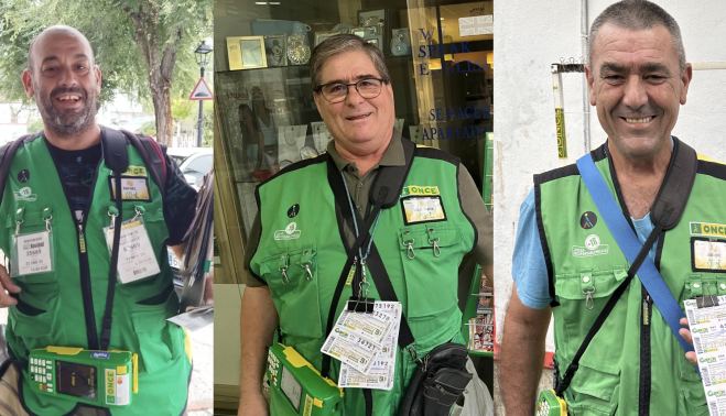 En Chiclana, José María Alba, vendedor de la ONCE desde 2014, vendió diez cupones premiados con 35.000 euros a las puertas del Mercado de Abastos y el Centro Comercial Plaza de la localidad gaditana. “Es una alegría muy inmensa la que se siente -dice antes de saber a quién le ha dado la suerte. Es mucha satisfacción poder ayudar a familias que lo necesitan y que les vienen muy bien este dinero. A mí es como si me hubiese tocado porque me da mucha alegría dar premios y ayudar a la gente”, comenta entre las primeras felicitaciones que va recibiendo.