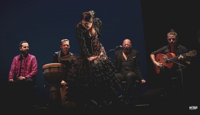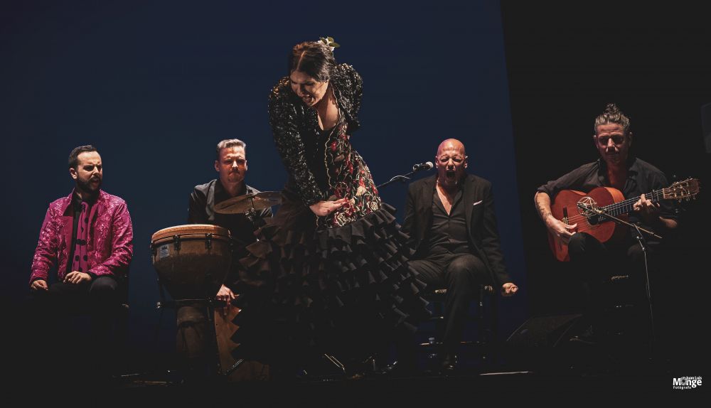 Tangos, rondeñas, soleá por bulerías y alegrías dieron contenido a un espectáculo que acogió con buen agrado el numeroso público que asistió al Teatro Moderno, merced a la fuerza y el sentimiento que derrocharon los artistas sobre el escenario y para el que se escoltaron del cante de Iván Vaca El Torrán, el toque de Juan Manuel Fernández y la percusión de Naim Real.