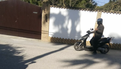 Una vecina se ha topado con este individuo cuando circulaba en su moto "con los genitales al aire". Para avisar a la población, "me oculté en el hueco de un portal y esperé. Le oí arrancar la moto y como ya tenía preparada la cámara, justo cuando pasó le hice las fotos".