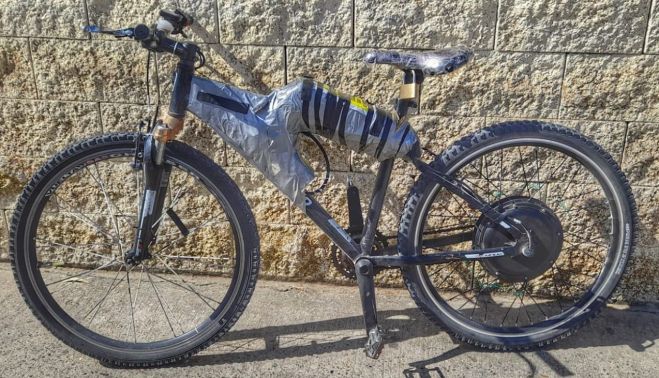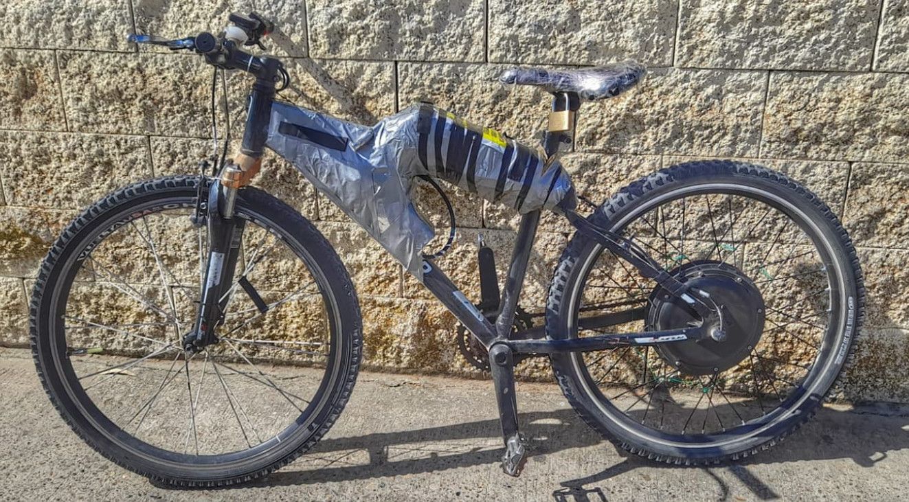Los agentes interceptaron a la persona que conducía esta bicicleta repleta de cintas aislantes que unían el tubo superior e inferior. Un invento para, posiblemente, cubrir los daños que había sufrido el objeto en otra ocasión sin haber acudido al taller para su reparación. Acto seguido le pusieron una denuncia por infracción al Reglamento General de Vehículos.