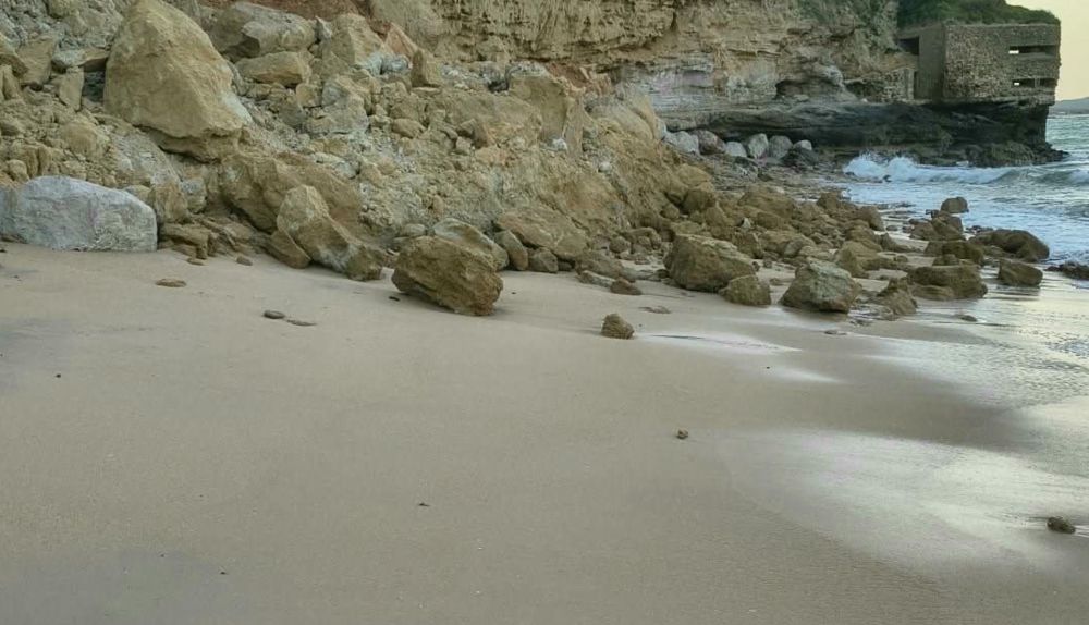 Piedras de distintos tamaños cayeron sobre la arena de la Cala Puntalejos de Conil. Fue a primera hora de la mañana del 3 de abril, Viernes Santo, fecha en la que numerosos visitantes disfrutaban de la costa gaditana. Por suerte, el derrumbe de parte del acantilado de esta playa, se produjo cuando la zona estaba vacía. Horas después se llenó de bañistas que caminaron entre las rocas e incluso colocaron su sombrilla cerca.