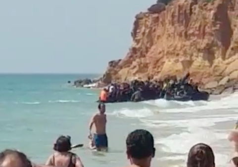 Muchas personas no dudaron en grabar en vídeo la llegada y el desembarco de estos migrantes que, como se comprueba en las imágenes, nada más pisar tierra corrieron hacia una zona de acantilados para escapar del lugar antes de que llegara cualquier patrulla de la Guardia Civil.
