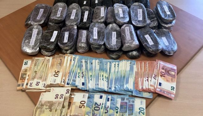 Ante la posibilidad de que en ese domicilio se pudiera estar desarrollando una actividad ilícita, se les acompañó hasta la vivienda para realizar un registro aceptado de manera voluntaria por ambas personas. En su interior se hallaron diversos paquetes de color marrón envueltos en plástico transparente y que contenían un total de 10.500 kilogramos de hachís así como 5.950 euros en efectivo. Las dos personas fueron detenidas.
