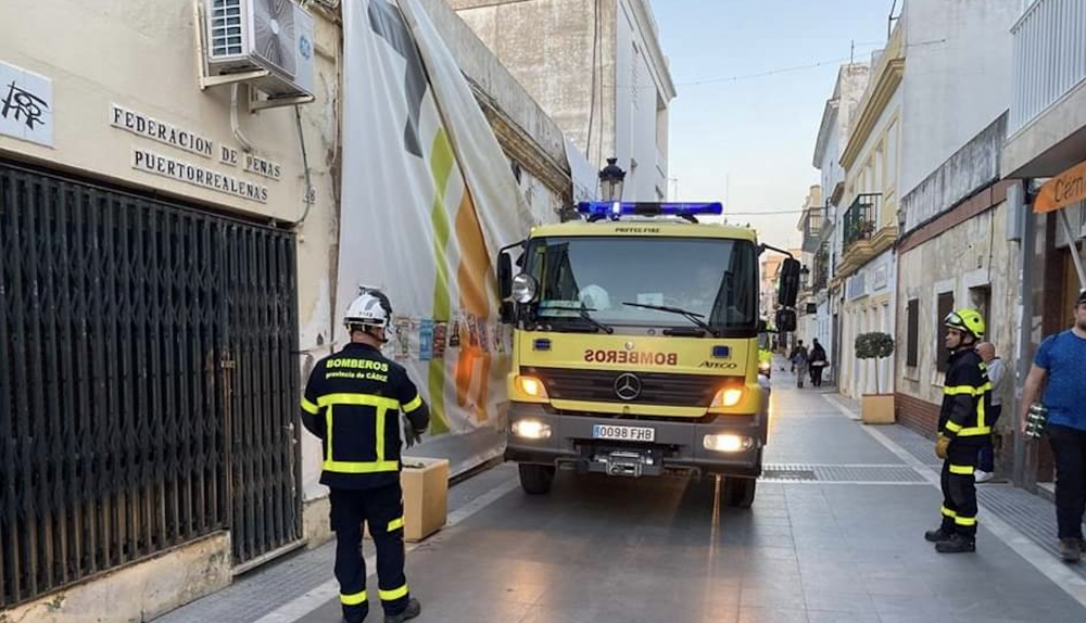 El fuerte viento que ha azotado este miércoles la provincia de Cádiz ha provocado destrozos. En Puerto Real, las rachas de hasta 70 kilómetros por hora han provocado que los bomberos y la Policía Local se haya movilizado hasta la calle De la Plaza, donde se ha producido el desprendimiento de una luna de grandes dimensiones ubicada en la fachada de uno de los edificios.