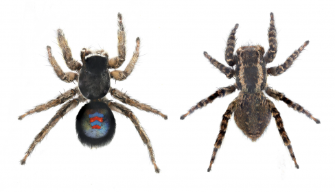 La prestigiosa revista internacional Zootaxa ha publicado en los últimos días el descubrimiento de una nueva especie de araña en el sur de la Península ibérica. Se trata de una pequeña araña de la familia de los Saltícidos, conocidas como arañas saltarinas por la forma en que se desplazan, que destaca por el llamativo colorido de sus machos, que recuerdan en su apariencia a especies tropicales de esta familia conocidas como arañas pavo real, pues en su cortejo muestran su colorido abdomen como si se tratara de la cola de esta ave. Las hembras son, sin embargo, de un discreto color y muy semejantes a otras hembras de arañas de esta familia.