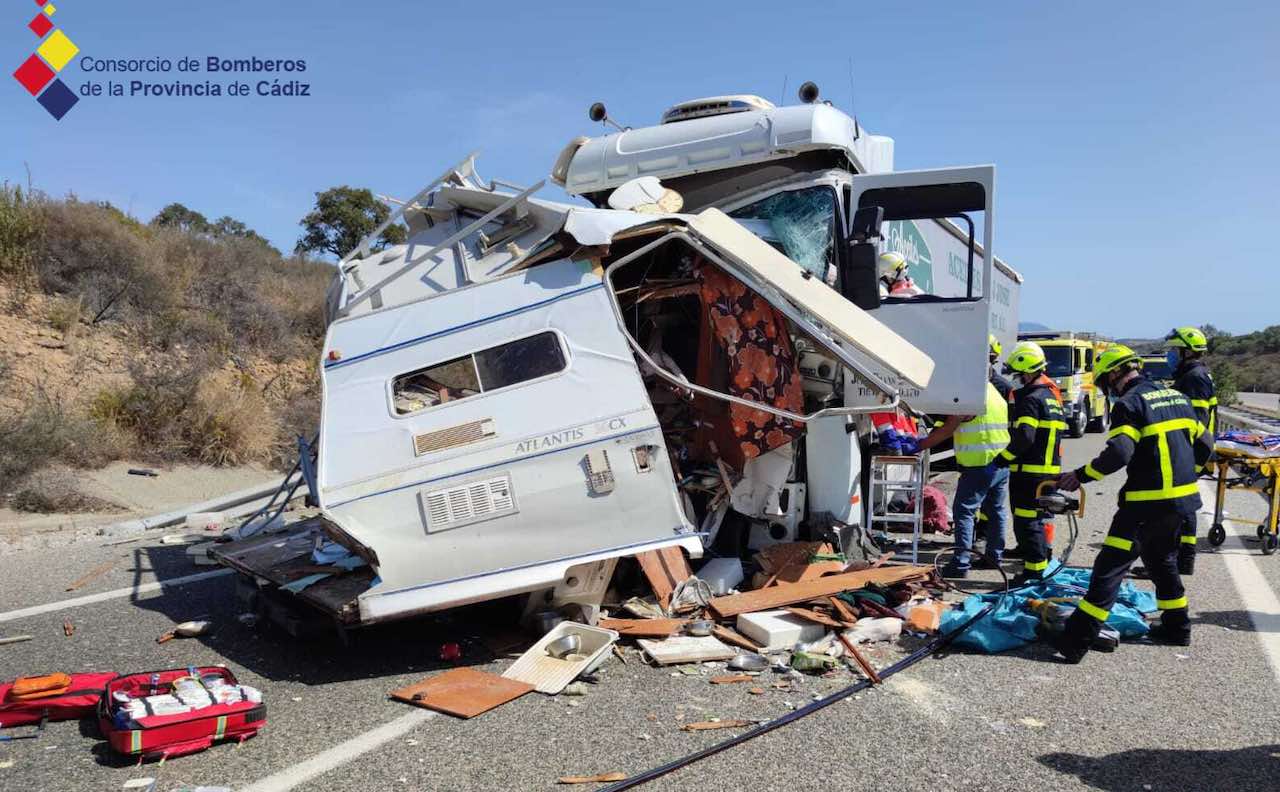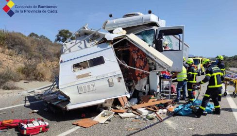 Cuando llegaron, los bomberos procedieron a descarcelar al conductor del camión, que estaba atrapado y que posteriormente fue trasladado por los servicios sanitarios al Hospital de Algeciras. Posteriormente se descarceló a los dos ocupantes de la autocaravana, un varón de nacionalidad inglesa de 28 años y una mujer de nacionalidad francesa de 32 años, ambos ya fallecidos.