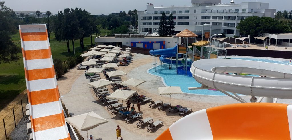 Vista del hotel colindante al parque acuático desde uno de sus toboganes. FOTO: AQUAFUN Costa Ballena