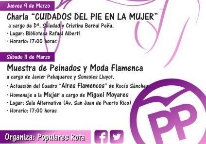 Maese ha considerado "un insulto a la lucha por la igualdad" las actividades del PP en la localidad roteña, que ha calificado como "el regreso de la sección femenina". La socialista ha hecho referencia a tres actividades concretas, como las charlas tituladas 'Dolores Lumbares en la Mujer' y 'Cuidados del pie en la mujer' previstas en la tarde este miércoles, así como a una 'Muestra de peinados y moda flamenca'.
