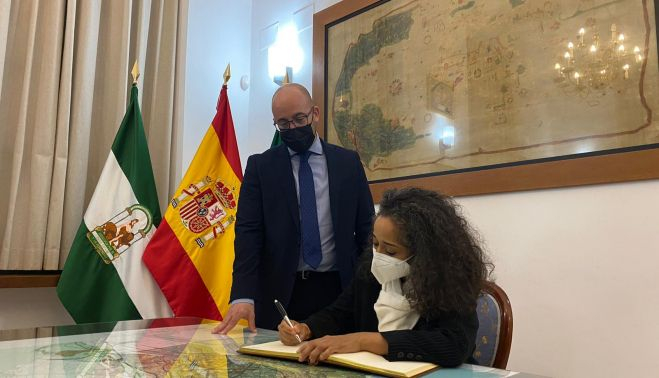 El alcalde de El Puerto de Santa María, Germán Beardo, ha recibido esta tarde en el Ayuntamiento la visita de la embajadora de Estados Unidos en España y Andorra, Julissa Reynoso, que juró su cargo a principios del pasado mes de enero en la Casa Blanca para liderar las relaciones del Ejecutivo de Biden con España, y que acaba de llegar al país.
