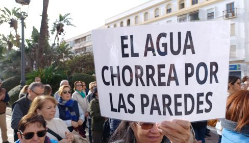 "Goteras y humedades" o "el agua chorrea por las paredes" son las frases que se han observado este martes en las pancartas que alumnos y profesores del CEPER La Arboleda Perdida de El Puerto han sujetado frente a las puertas del Ayuntamiento.