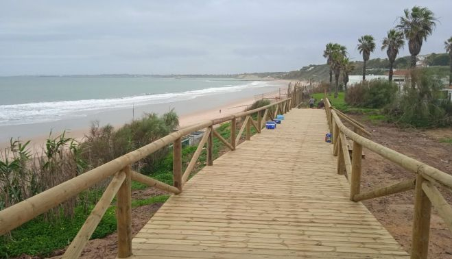 Una inversión de 791.340 euros dará vida a esta pasarela que se instalará en todo el litoral portuense y que ya ha atraído a muchos curiosos, que no han podido evitar andar por la zona para ver cómo está quedando.