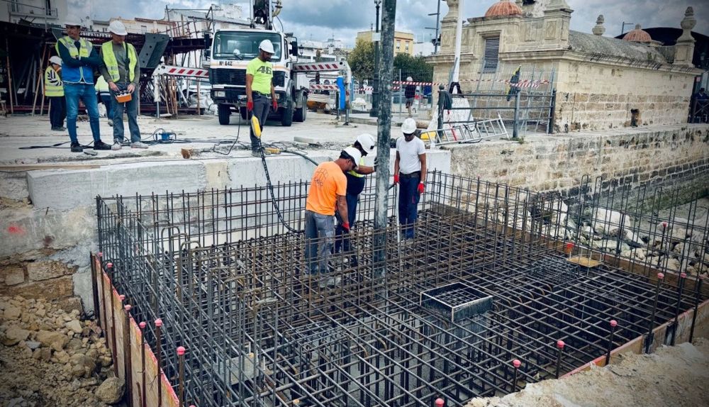 Las obras de la nueva pasarela peatonal sobre el río Guadalete siguen avanzando en El Puerto. El alcalde de la ciudad, Germán Beardo, ha supervisado este miércoles 8 de abril la evolución de unos trabajos que avanzan a la altura del Muelle de San Ignacio, justo en el punto donde ha arrancado el hormigonado del estribo de la margen derecha.