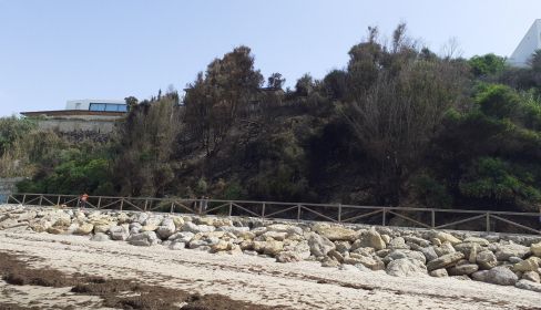 Donde antes había vegetación entre verde y marrón, ahora todo el terreno presenta un color oscuro, negro, que revela lo que ocurrió esa noche. Sin duda, muchos vecinos y turistas se han percatado de ello y han compartido fotografías del estado en el que se encuentra actualmente el paraje, que recorre las playas de Las Redes, El Ancla y Fuentebravía.