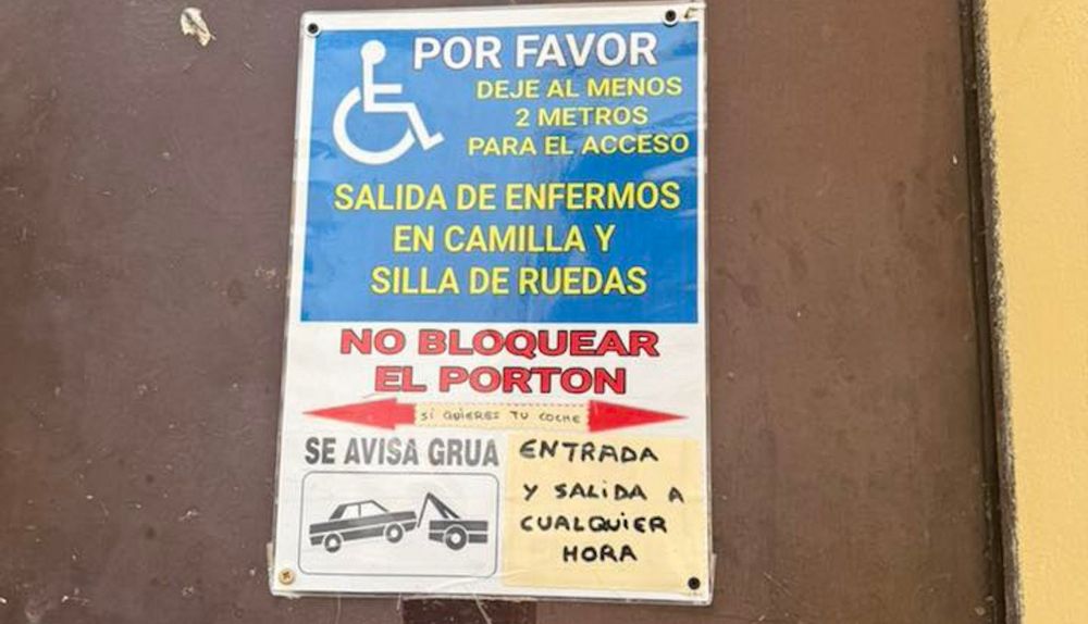 A simple vista, el mensaje parece apelar a la solidaridad y empatía. Sin embargo, estos no tienen validez legal. Así lo ha denunciado un vecino en un grupo de Facebook donde ha contado su experiencia tras dejar aparcado su vehículo delante de esta casa.