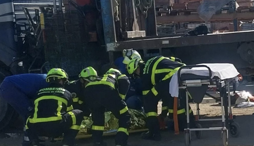 Los bomberos, con un total de ocho efectivos y tres vehículos, han ayudado a sacar al hombre de los bajos del camión y han colaborado con los servicios sanitarios, que han trasladado al herido al hospital en ambulancia.