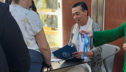 Más de 500 cuadernillos y pulseras ha entregado Calleja a los ciudadanos que han acudido a su llamamiento. El libro de colorear incluye monumentos como el Castillo de San Marcos, el Monasterio de la Victoria o la Real Plaza de Toros de El Puerto.