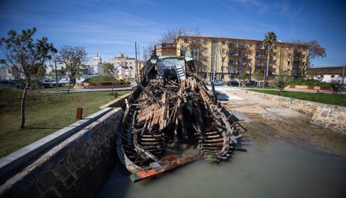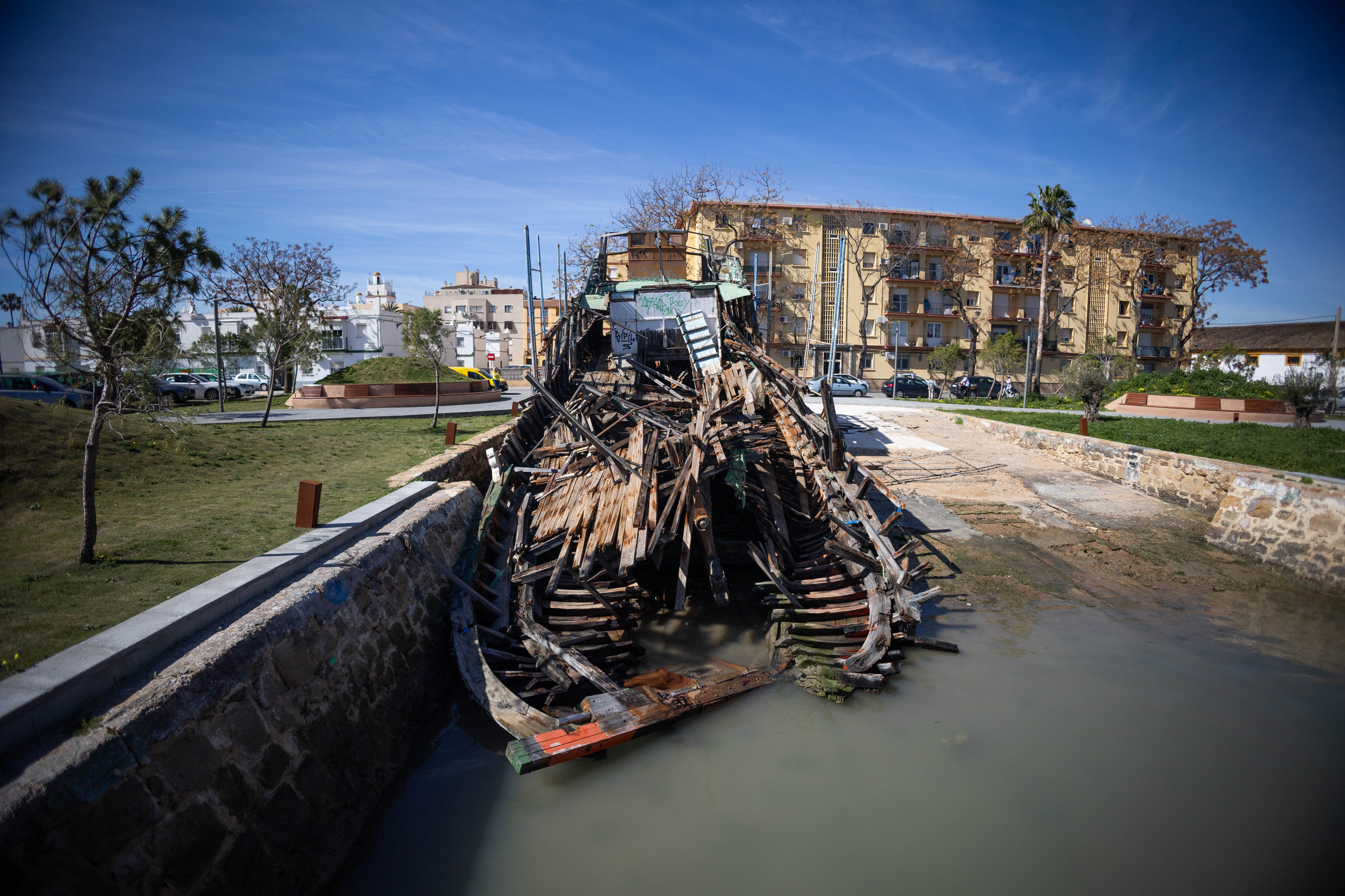 Una distinción que le otorga especial protección, pero que supone una traba para poder llevar a cabo su retirada definitiva. Descatalogarlo ha sido la solución que han encontrado para poder quitar el esqueleto de madera que permanece frente al río Guadalete.