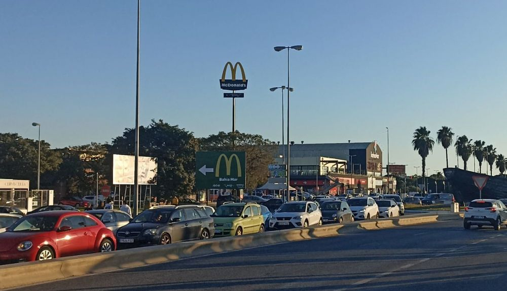En la avenida de Europa se han presenciado largas colas de vehículos parados que trataban de acceder desde otro municipios como Cádiz, Chiclana o Puerto Real, o desde Valdelagrana.