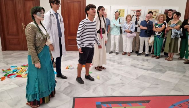 Tras la conferencia, el grupo Teatro Balbo ofreció una representación en la que cuatro actores, uno de ellos en el papel de un joven Alberti, dieron vida a una historia basada en “Marinero en tierra”. Los intérpretes recitaron varios de sus poemas mientras guiaban a los asistentes por las distintas dependencias de la Fundación, creando un recorrido inmersivo.