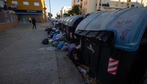 “La basura lleva acumulada días, hay residuos por fuera y mal olor”. Son las palabras de Montse Leiva, presidenta de la asociación de vecinos La Música, que, como el resto de residentes, observan una escena lamentable.