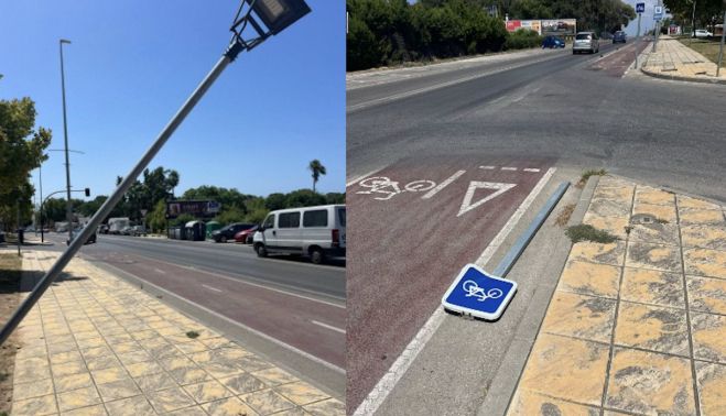 En el paseo, hay farolas dobladas y señales de tráfico tumbadas. Las quejas de los vecinos se centran en la contaminación acústica, pero, sobre todo, en el comportamiento incontrolable de determinadas personas que se dedican a hacer sus necesidades en la vía, dejar sus vómitos o armar jaleo a altas horas de la madrugada perturbando su descanso.