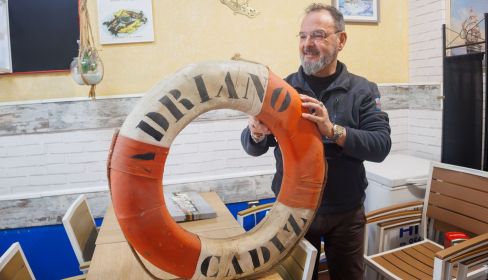 “No recuerdo si era su tío o su primo, pero era un señor mayor que ya falleció. Tenía unos cinco salvavidas más guardados en su casa. No sé qué haría con ellos”, comenta el hostelero, que recibió este regalo unos años después del hundimiento.