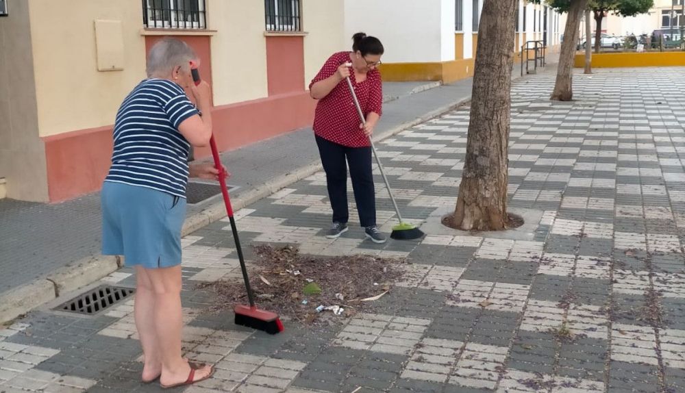 Vecinos y vecinas de la plazoleta Dr. Agustín Fernández, en El Puerto, se armaron el pasado fin de semana con escobas, recogedores y fregonas para adecentar su barrio. Denuncia un "abandono histórico" por parte del Ayuntamiento. Y decidieron actuar por su cuenta y poner en valor un espacio comunitario que, según denuncian, lleva años deteriorándose.