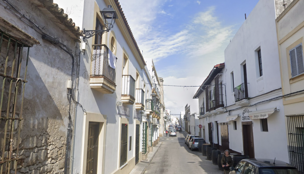 El vehículo circulaba por esta estrecha calle del Barrio Alto de la ciudad cuando chocó con el motorista, que sufrió una caída por el impacto.