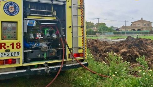 La extinción no pudo realizarse únicamente de forma convencional. Además del trabajo manual de los bomberos, fue necesaria la intervención de un tractor para extraer y remover la paja, que fue trasladada al exterior del establo y depositada en un lugar seguro donde pudo ser completamente apagada sin riesgo de que el fuego se reprodujera o se extendiera a otras zonas de la instalación.