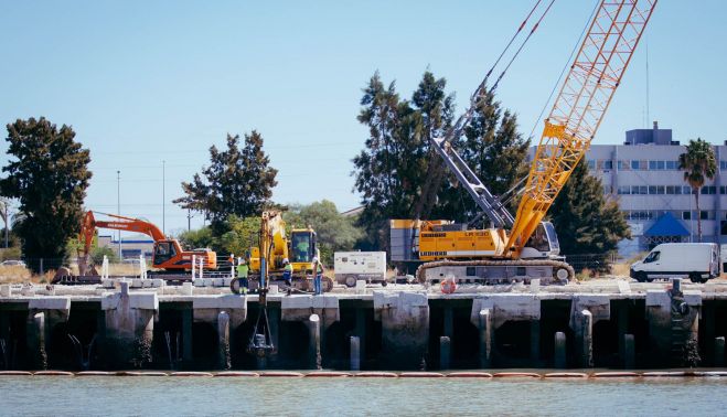 El paisaje del río Guadalete, en El Puerto, está cambiando. Las grúas llevan unas semanas instaladas en la margen izquierda, justo frente al antiguo muelle del Vapor, donde se observa movimiento desde la otra orilla. En esta zona avanzan las obras de reconstrucción del tramo IV del muelle. Se trata de un proyecto impulsado en terrenos de la Autoridad Portuaria de la Bahía de Cádiz (APBC) y que supondrá una inversión de 4,04 millones de euros (IVA incluido). La finalización está prevista para el primer trimestre de 2026.