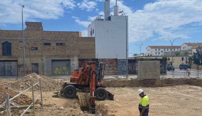 La zona de Cajas de Aguas, al lado del Centro Cívico Augusto Tolón, en El Puerto ya está llena de obreros y grúas. Acaban de comenzar los trabajos para la construcción de dos promociones que suman 48 viviendas nuevas. El promotor, Manuel Leflet Arquitectos, de Viserion Bay S.L, ha estado presente en la visita que el alcalde, Germán Beardo, ha realizado este miércoles junto a la teniente de alcalde de Gestión Urbanística y Patrimonio y Edificios Municipales, Leonor Caballero.