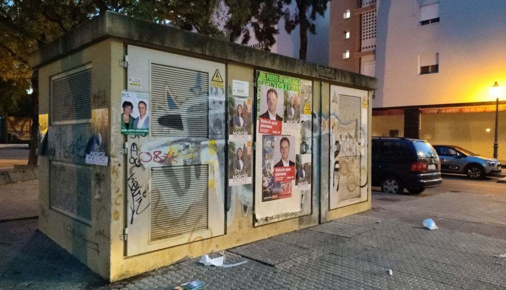 Carteles publicitarios de los partidos siguen colgados y pegados en los rincones de El Puerto. Nuevas Generaciones del PP ha denunciado "la ilegalidad" que realizan las distintas formaciones políticas municipales al no haber retirado aún su propaganda electoral una vez pasadas las elecciones del 28M.