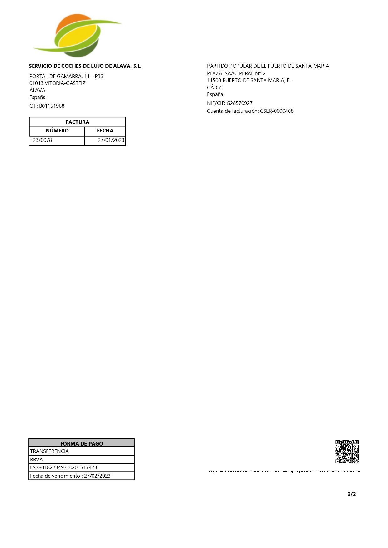 Según explica el PP, la furgoneta es un vehículo alquilado y pagado como así consta en la documentación que se adjunta al comunicado de prensa emitido, tanto del contrato como de la factura y el pago a la empresa “Servicio de Coches de Alava, SL” en concepto de arrendamiento sin conductor desde mayo a diciembre del año pasado y que el Partido Popular acaba de prorrogar.