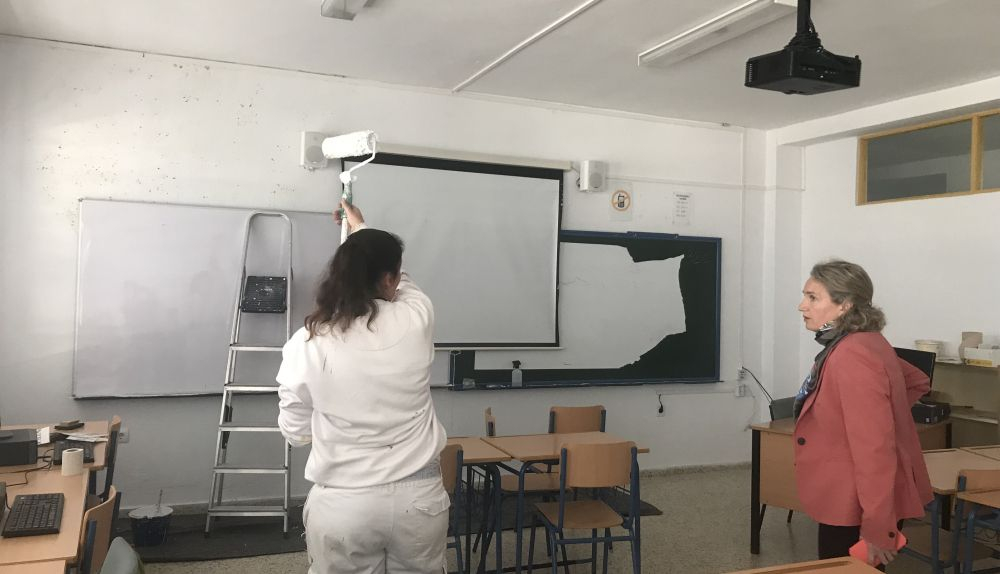 La concejala de Educación del Ayuntamiento de El Puerto, Lola Campos, ha visitado este miércoles el Centro de Educación Permanente La Arboleda Perdida para atender sus demandas y supervisar personalmente los trabajos de mantenimiento y arreglo de desperfectos que se han iniciado tras la protesta que tuvo lugar este martes frente a las puertas del consistorio. Se están ejecutando de forma prioritaria, tal y como ha trasladado la edil al director en funciones del centro, Manuel Marín, al que también ha corroborado la próxima incorporación de un portero.